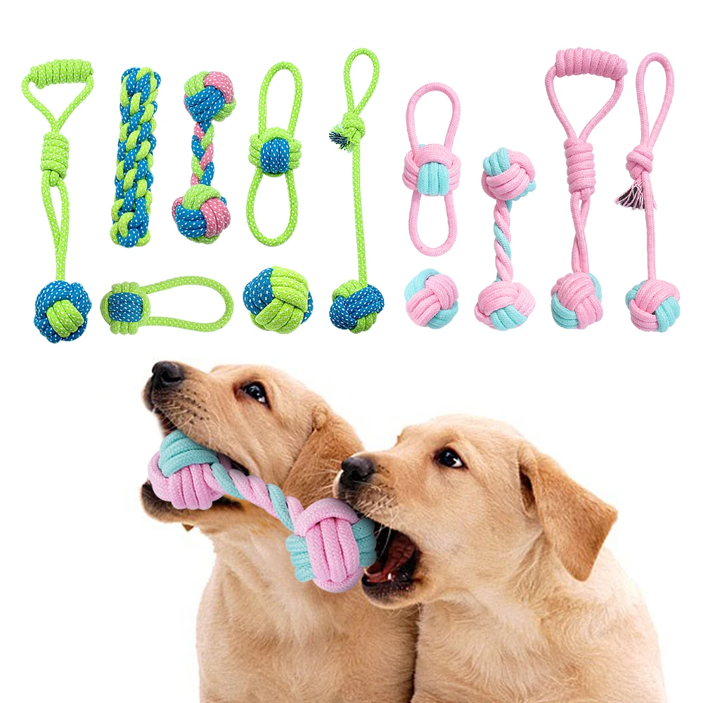 Cotton Rope Dog Toy Funny Dog Chew Toys Teeth Cleaning Pet Knot Ball For Small Medium Large Dogs Playing Training Pitbull Dog Toys Aliexpress